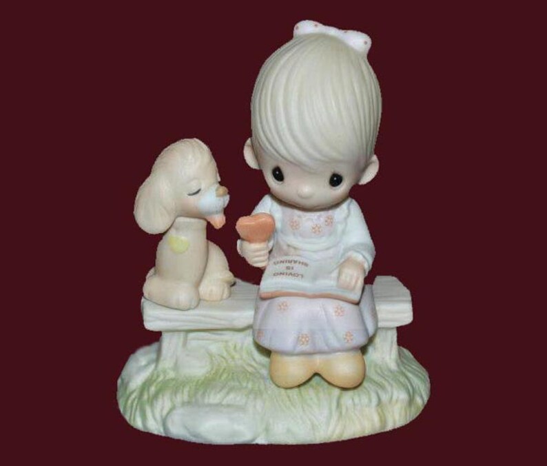 New Precious Moments Loving Is Sharing Girl E 3110g Girl With Puppy Anniversary Engagement Porcelain Figurine Never Displayed