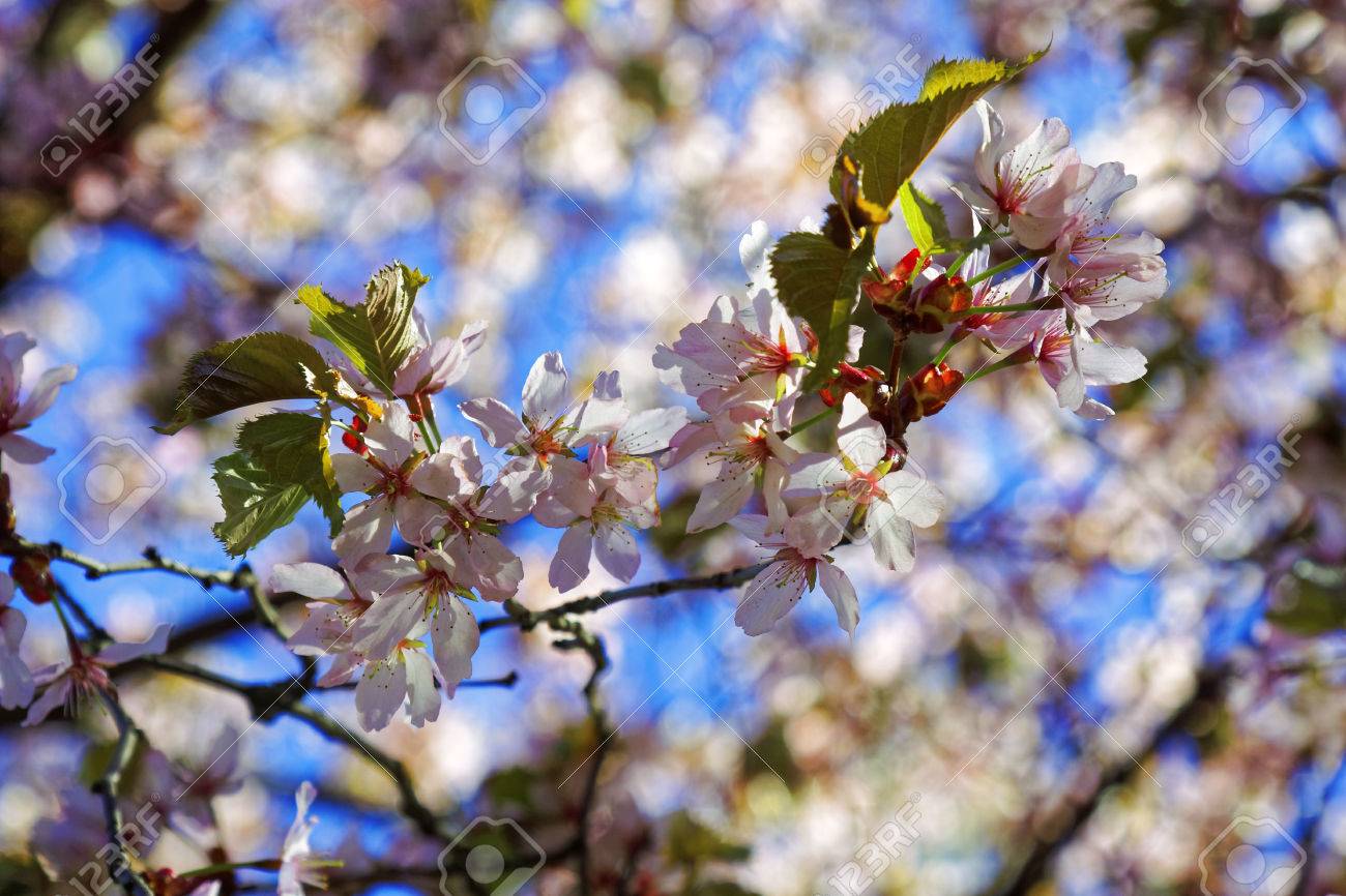 Sakura Cherry Blossom In Auckland Botanic Gardens Stock Photo