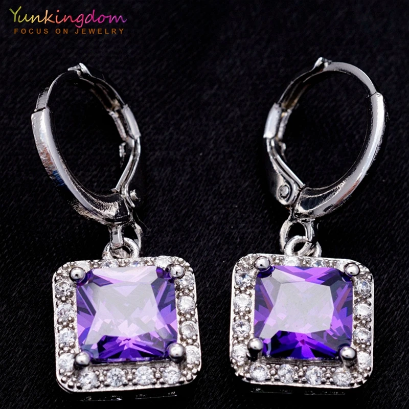 Yunkingdom New Hot Sale Purple Square Crystal Zircon Drop earrings Small Dangle for Women Fashion Jewelry Wholesale