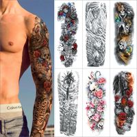 Extra Large Full Arm Temporary Tattoos Sleeves Peacock Peony Dragon Skull Designs Waterproof Tattoo Stickers Body Art Paints For Men Women Temporary
