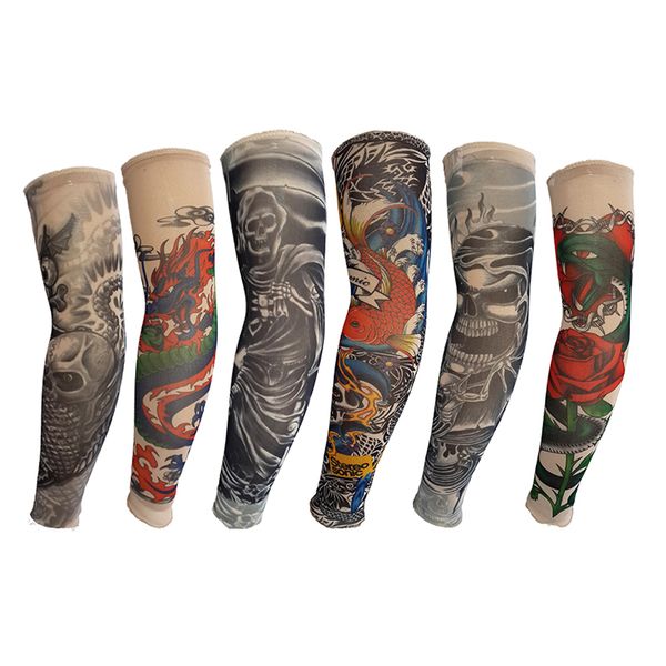 Nylon Elastic Tattoo Cover Arm Sleeve Skull Dragon Snake Flower Fish Designs Sunscreen Sleeves Breathable Cycling Unisex Stretchable Tattoos