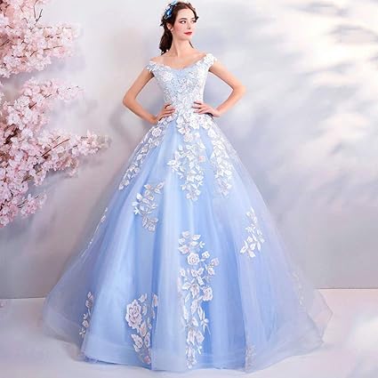 Amazon Com Yt Er Blue Luxury Beaded Wedding Dress Bride