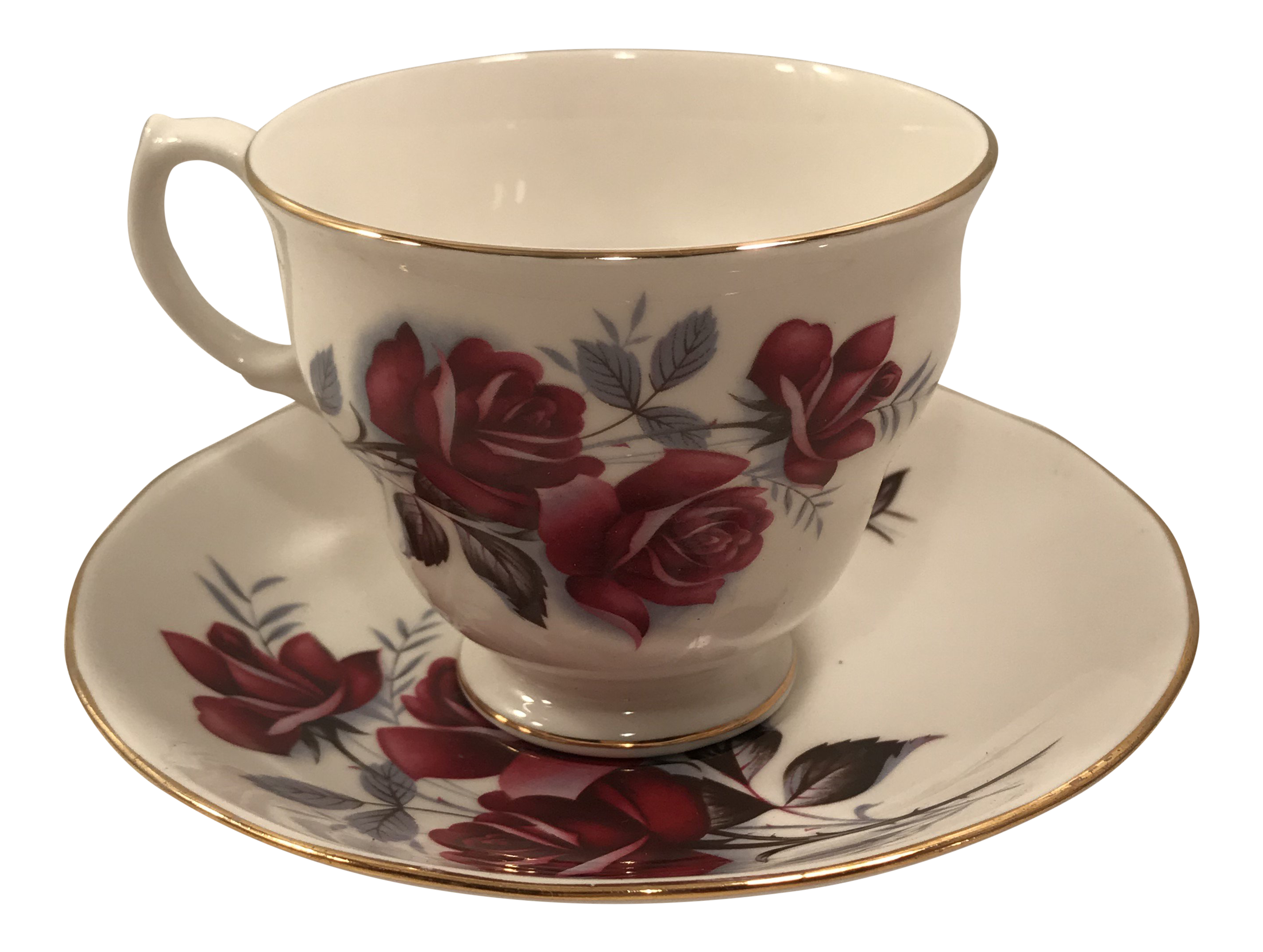 Royal Vale Red Roses China Teacup Trio C 1960s