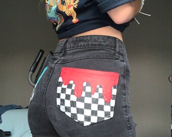 Painted shorts painted denim jacket painted jeans painted clothes jeans tumblr diy jeans art hoe aesthetic grunge outfits retro outfits. Making clothing less intimidating and helping you develop your own style.