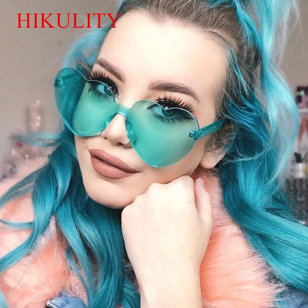 Rimless Candy Color Heart Sunglasses Women 2018 Fashion Sexy Cute